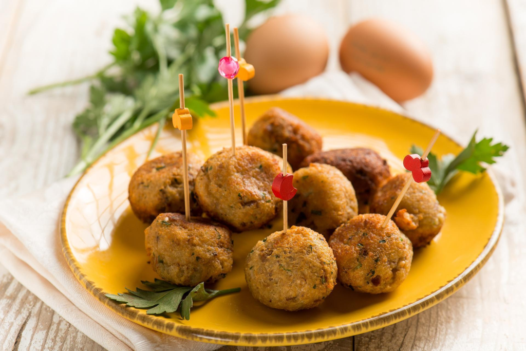 - Com as mãos umedecidas, forme pequenas bolinhas com a massa de grão-de-bico.