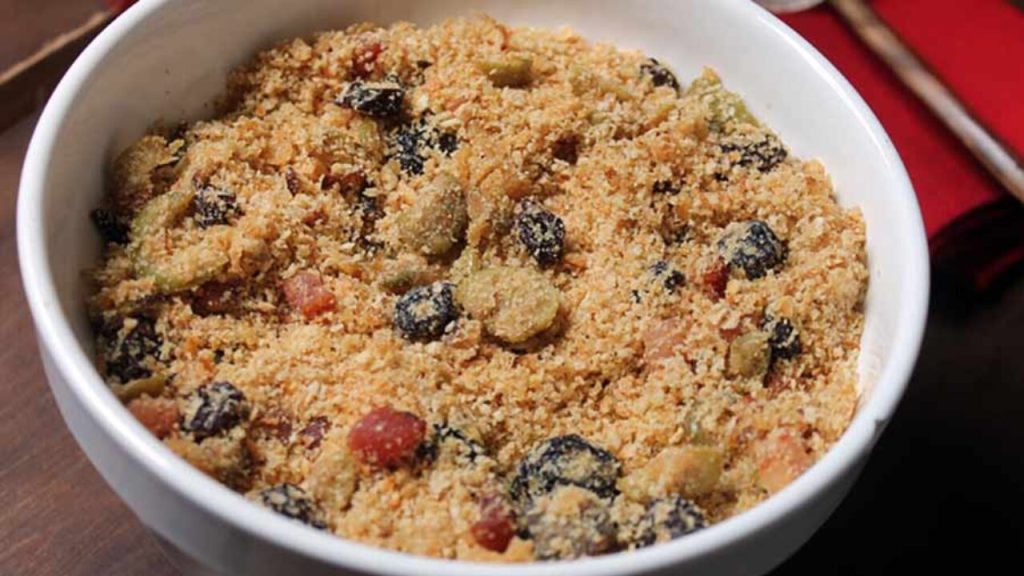 Modo de preparo da Receita de Farofa de Mandioca com Damasco e Ameixa