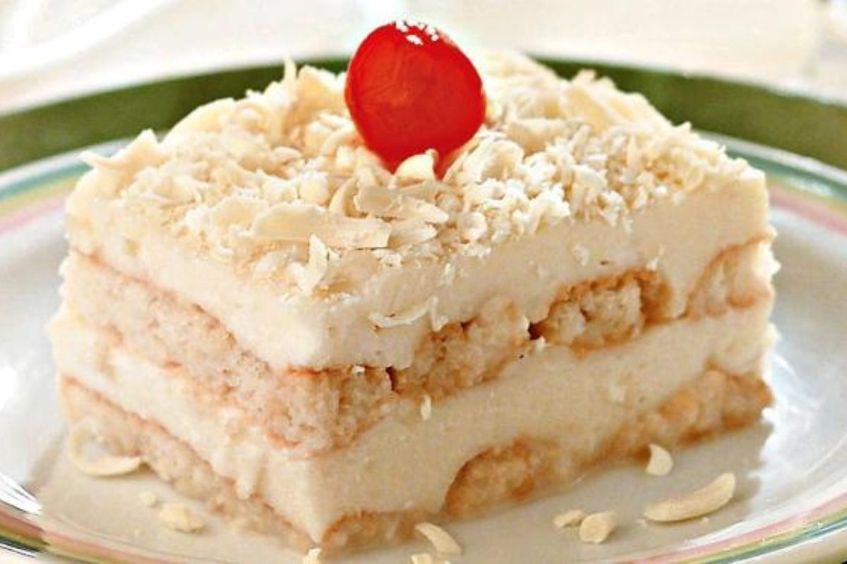 - Cubra a última camada de creme com o chocolate branco ralado e leve a geladeira por pelo menos 3 horas. Sirva bem gelado.