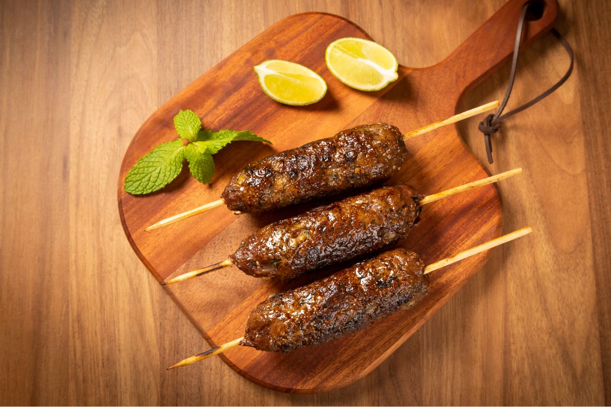 - Molde porções da carne ao redor dos espetos, formando salsichões alongados e firmes.