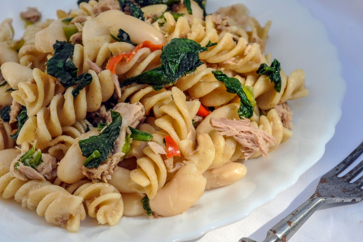 Tanto o atum quanto o tomate trazem frescor e leveza a este prato. Após cozinhar o fusili, refogue o alho no azeite, adicione o atum e os tomates, e tempere com sal, pimenta e ervas frescas, como manjericão e cheiro-verde.
