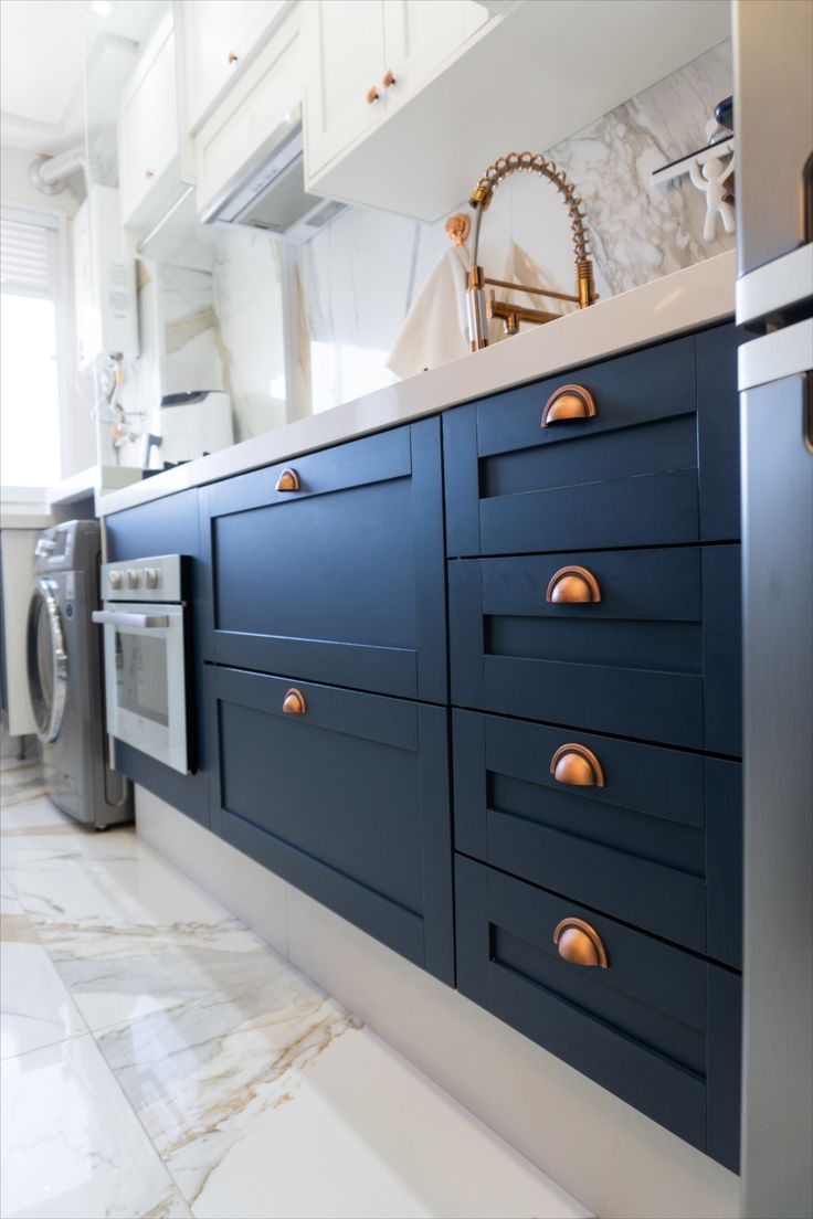 O azul-petróleo é outra grande aposta para o próximo ano. Esse tom escuro e elegante proporciona uma atmosfera futurística e sofisticada à cozinha.