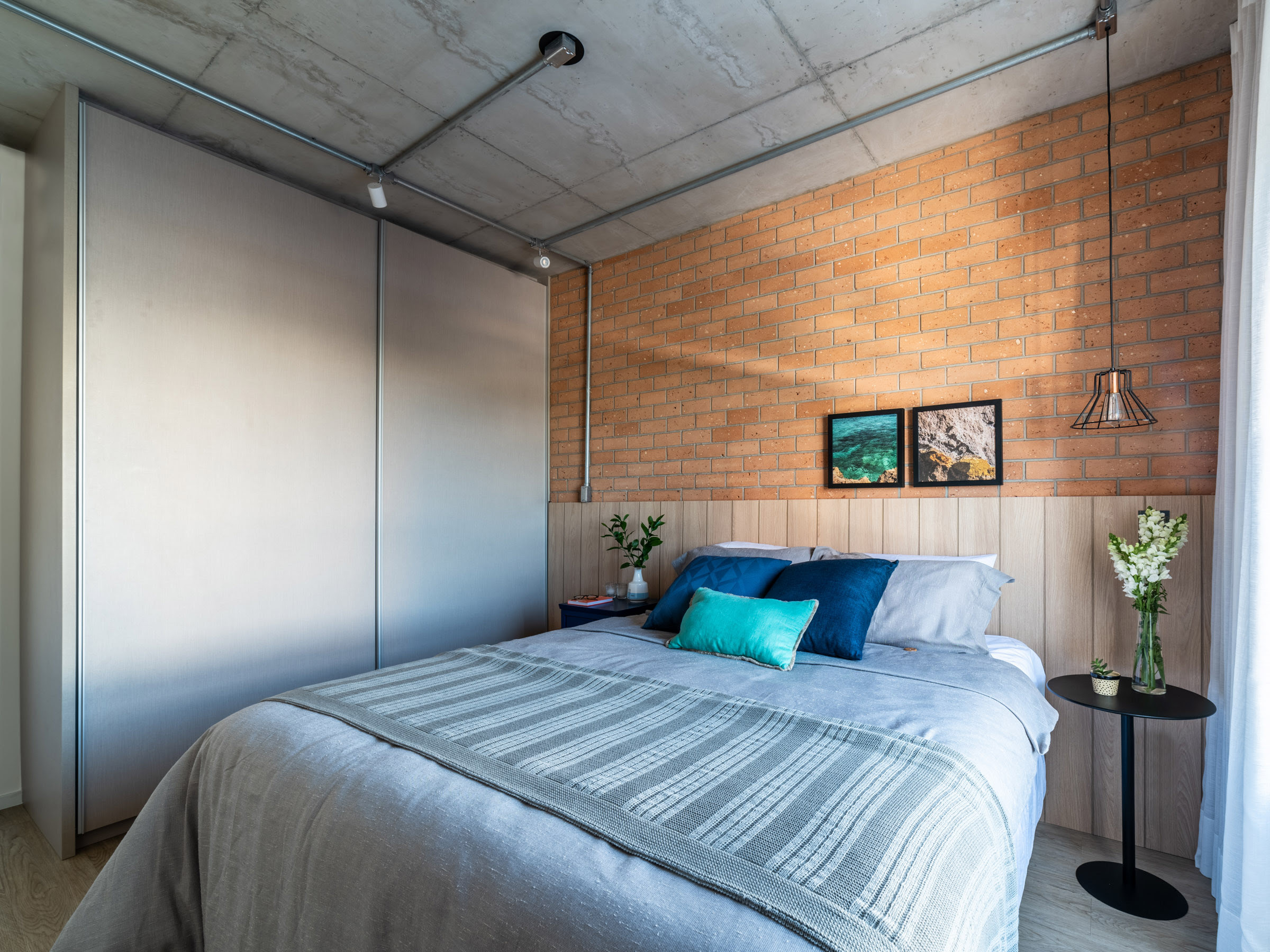 Você também pode escolher usar os bricks em todo o projeto, desde que faça sentido para a área e seu visual. Essa alternativa dá um toque mais ousado para o ambiente.