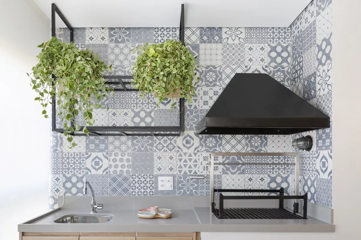 Como é feito à base de cimento, o ladrilho hidráulico é um revestimento para churrasqueira muito durável.