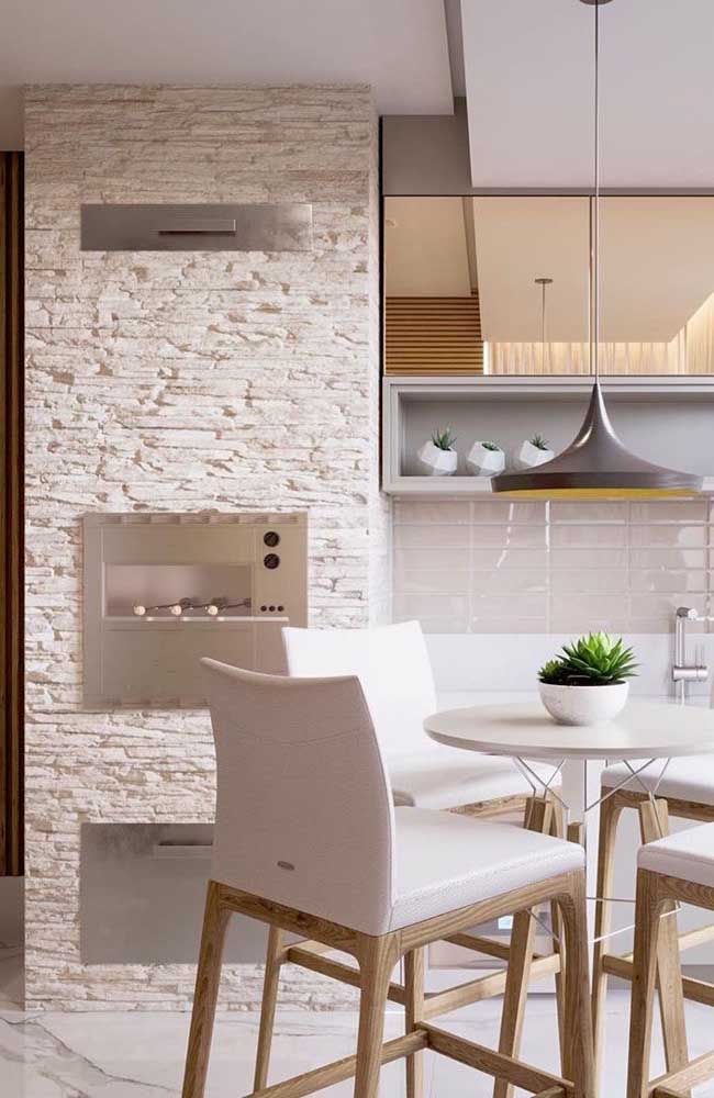 Feito em pedras, o revestimento para churrasqueira promove um acabamento bem bonito, pois oferece um toque mais natural, então a ideia é que esse modelo combina perfeitamente para decorações rústicas.