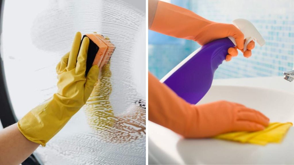 No banheiro, por exemplo, tenha um desinfetante de fácil acesso e limpe o box enquanto toma banho.