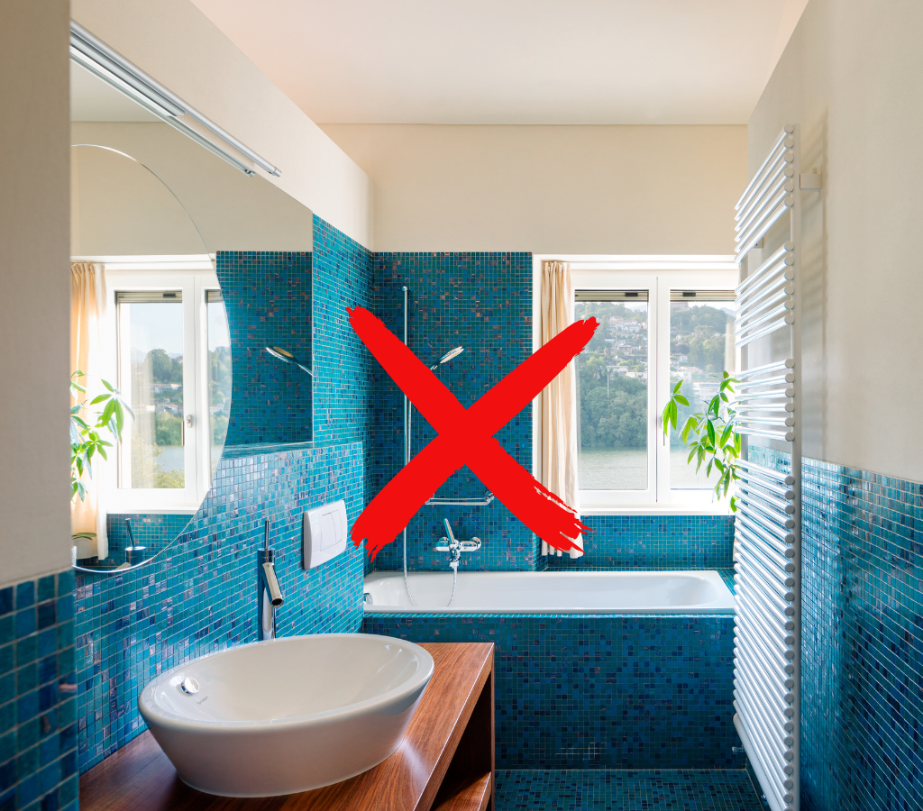Evitar contrastes muito marcados entre piso, parede e teto ajuda a manter a unidade visual do banheiro. Para isso: