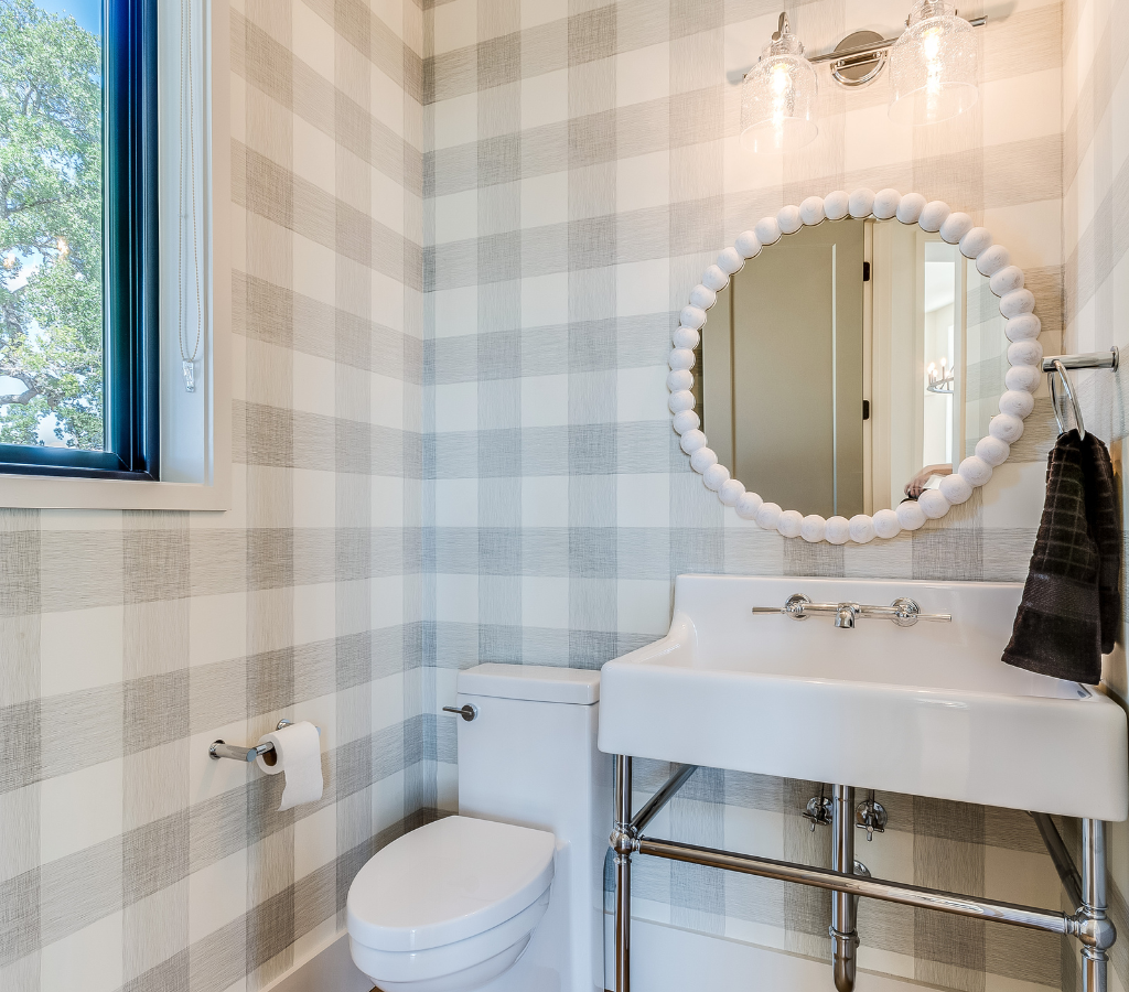 Prefira papel de parede vinílico, que é resistente à umidade e durável. Esse recurso pode ser usado em uma parede de destaque ou como faixa decorativa.