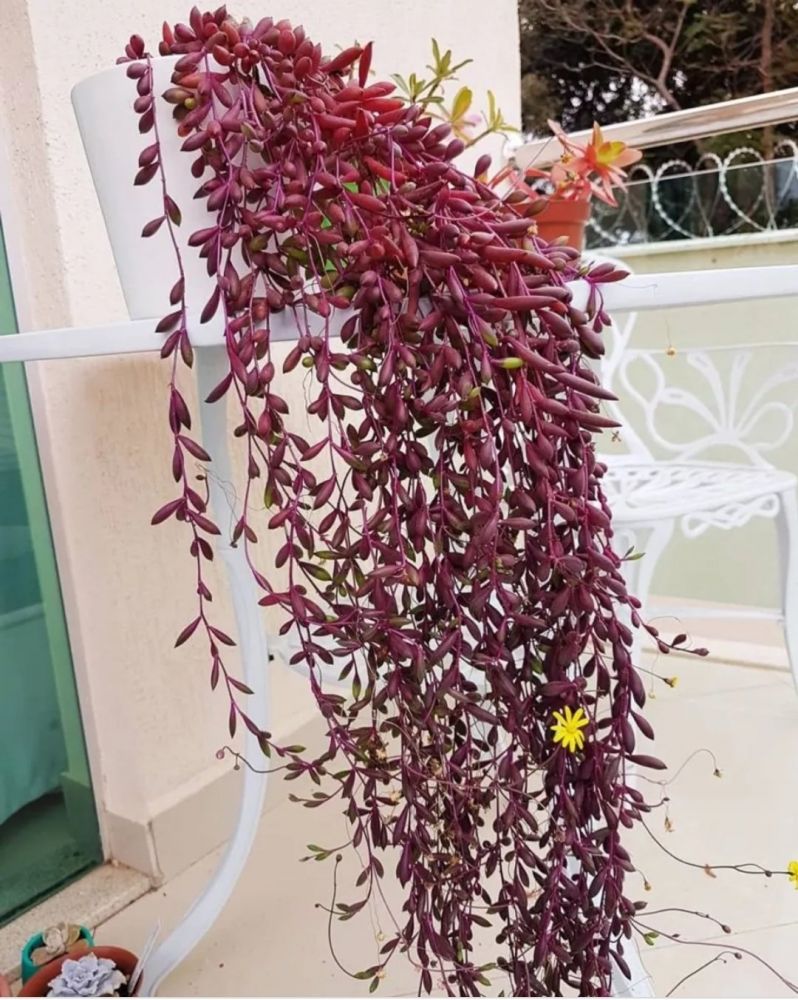 Trata-se de um tipo de suculenta pendente que pode atingir até 45 centímetros de comprimento. Ela se caracteriza por dar flores cor de rosa delicadas e pequenas, ajudando a colorir seu jardim suspenso.