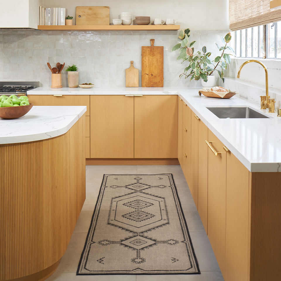 Considere o layout da sua cozinha e a área que deseja cobrir. Um tapete retangular pode ser ótimo para uma cozinha linear, enquanto um tapete redondo pode suavizar os cantos de uma cozinha angular.