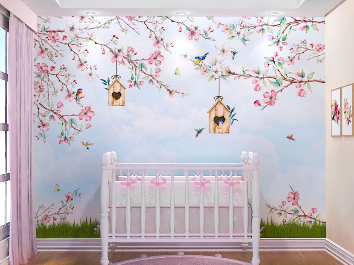 Também dá para montar uma decoração incrível se investir no tema flores. É possível desenhá-las na parede ou usar um papel de parede específico com essas estampas.