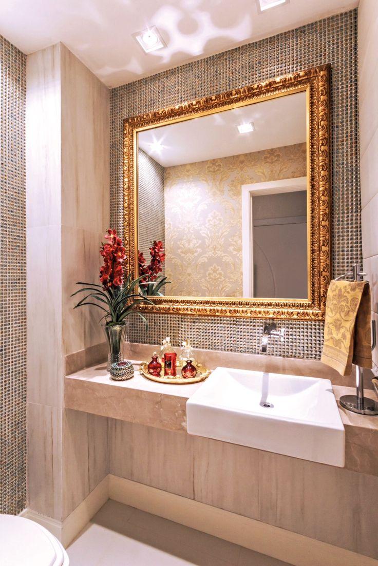 No entanto, nada impede que você use o dourado em outros detalhes da decoração do banheiro. Dá para utilizar um papel de parede que tenha detalhes dourados, por exemplo. Se optar por usar espelhos, escolha modelos com molduras douradas.