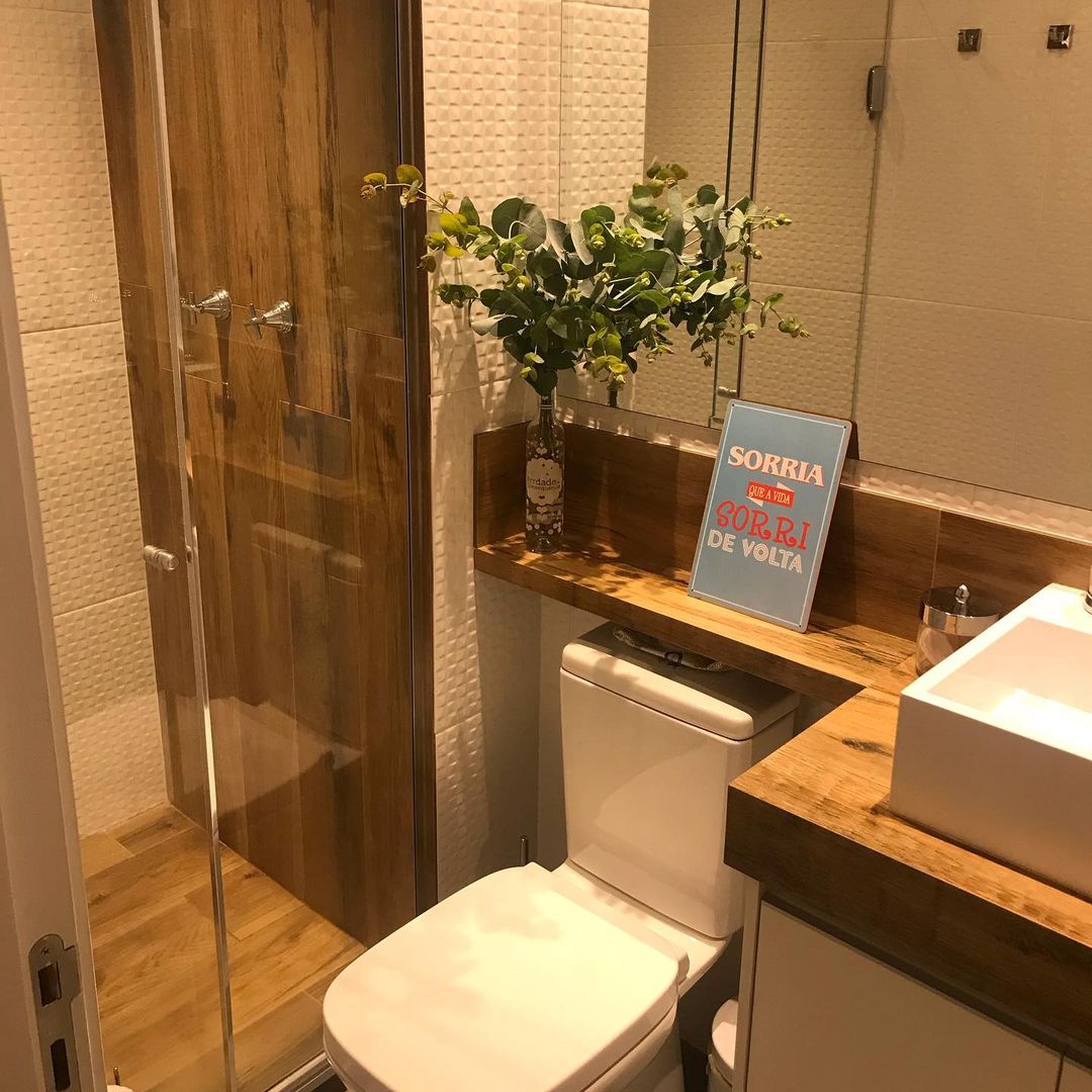 Para evitá-los, recomenda-se que invista em móveis de madeira tratada, pois são mais resistentes a danos. Dá para apostar em gabinetes de pia, armários e prateleiras de madeira, tornando a decoração do banheiro muito mais bonita, sem deixar a funcionalidade do lado.
