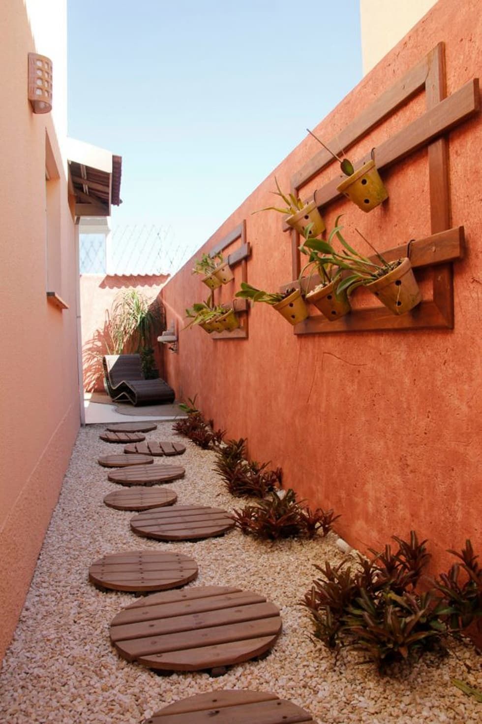 Essa é uma tendência que tem a ver com a valorização de tons naturais. Ela foge um pouco do óbvio do bege e do marrom, bem como de tons de verde, garantindo mais cor para espaços externos.