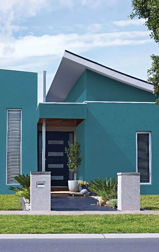 Os tons de verde azulado são tendências para decoração da área externa de imóveis em 2023. É possível trabalhar tanto com tonalidades mais claras, puxando para o azul, até alternativas escuras, mais próximas do verde.