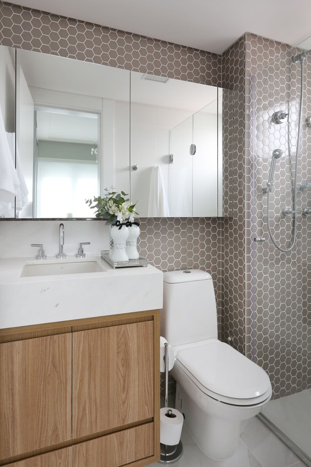 Para garantir uma manutenção mais simples, considere escolher pastilhas e rejuntes escuros. Assim, eles não ficarão encardidos com facilidade.