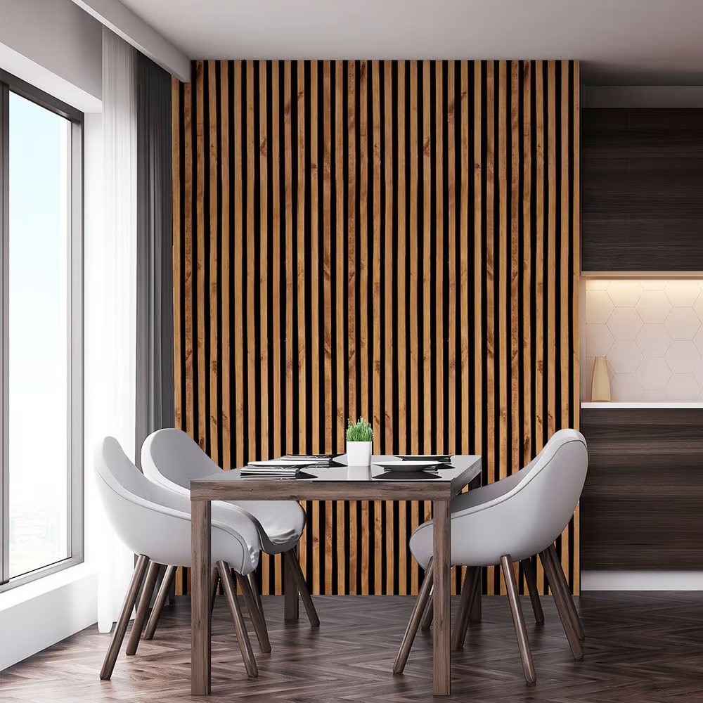 Em outros, as placas autocolantes possibilitam montar espécies de painéis ripados. Portanto, é a alternativa perfeita se você deseja ter um revestimento clássico, atemporal e que valorize ainda mais seu imóvel.