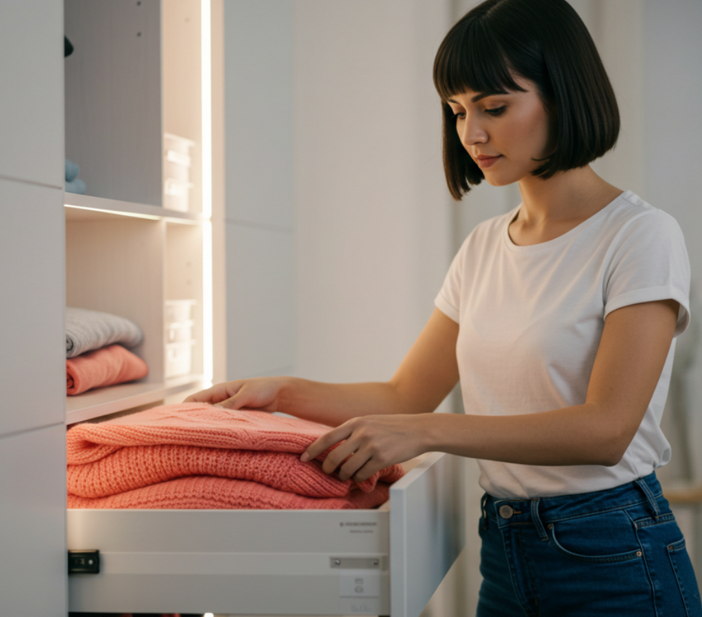Por exemplo, ao organizar o guarda-roupa, retire todas as peças, segure uma a uma e pergunte se cada item ainda é útil ou se traz alegria.