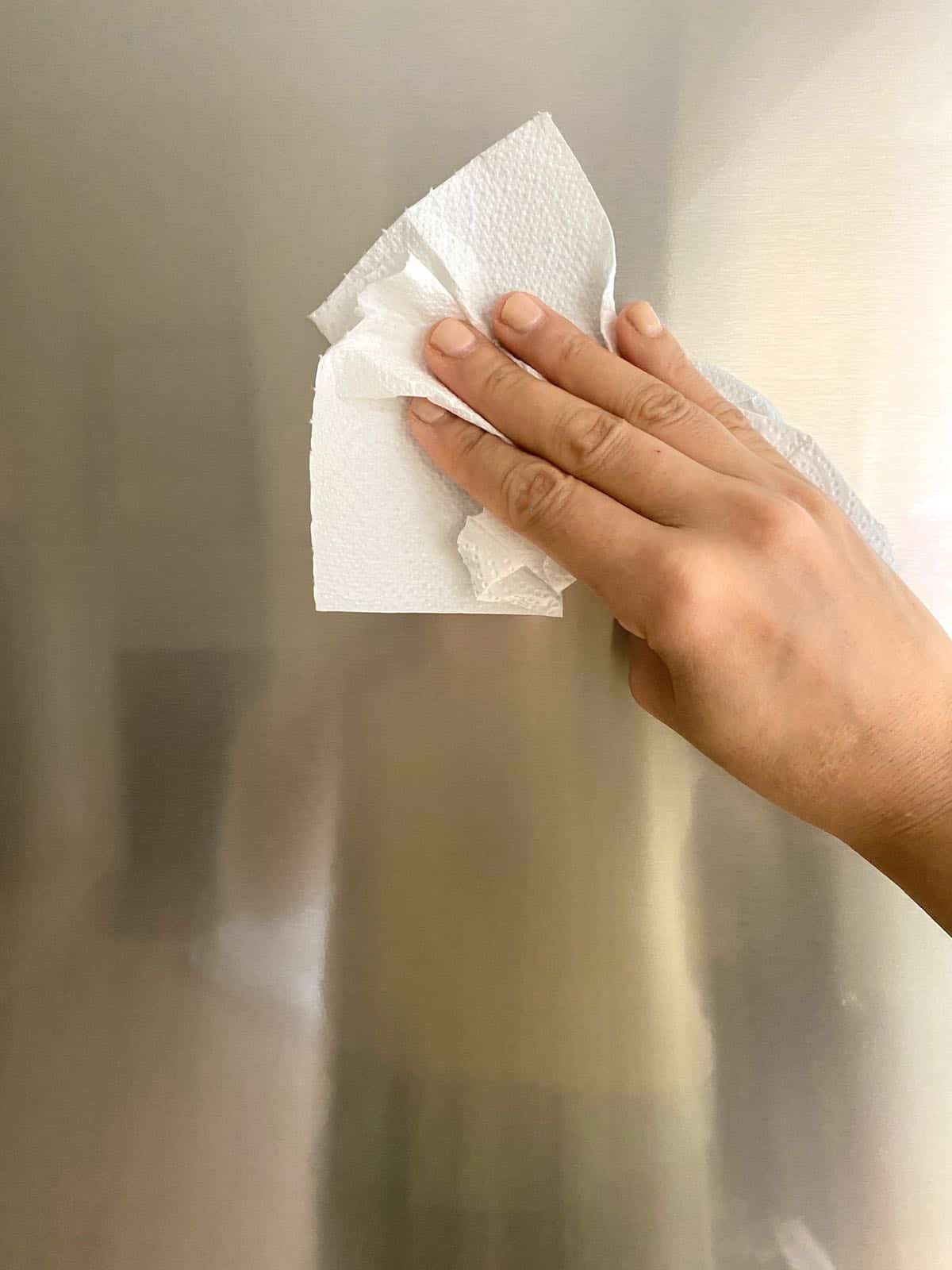 Finalize passando um pano umedecido em água para remoção dos resíduos de produtos e outro seco. Quanto antes secar o inox, menor o risco de ele ficar com manchas.