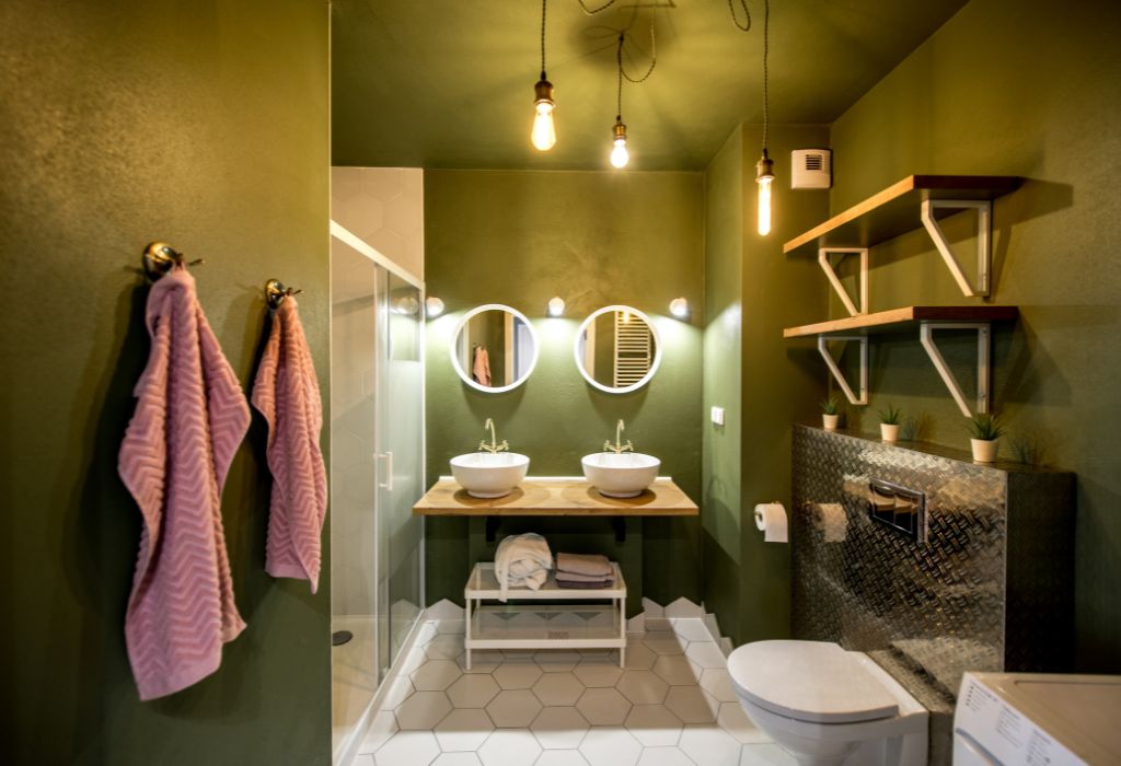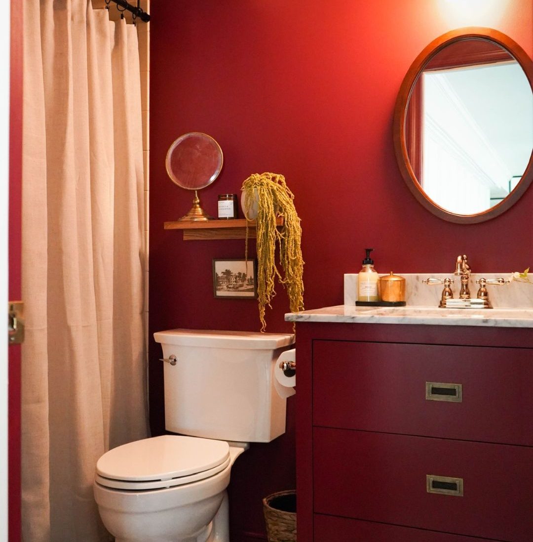 Apostar em tons escuros, pode ser uma maneira de sair do “mesmismo”, dando um estilo mais autêntico ao cômodo. Lembre-se apenas de comprar tintas específicas para banheiros que oferecem maior durabilidade contra umidade.