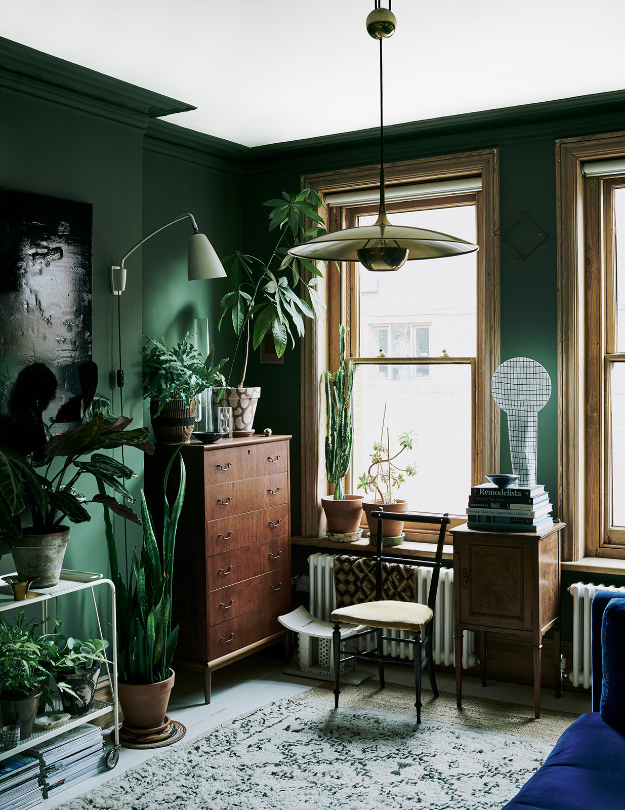 Os tons de verde são predominantes na decoração urban jungle e são excelentes alternativas para reforçar ainda mais a natureza no ambiente. Invista neles nas paredes e itens de decoração, por exemplo.