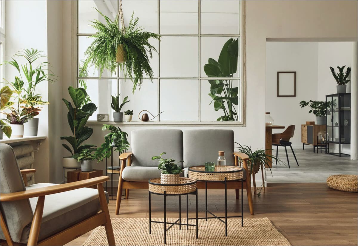 Nesse estilo decorativo, o verde, especificamente as plantas, é o grande destaque. O foco é tornar áreas internas mais aconchegantes e vivas, garantindo uma maior sensação de bem-estar.