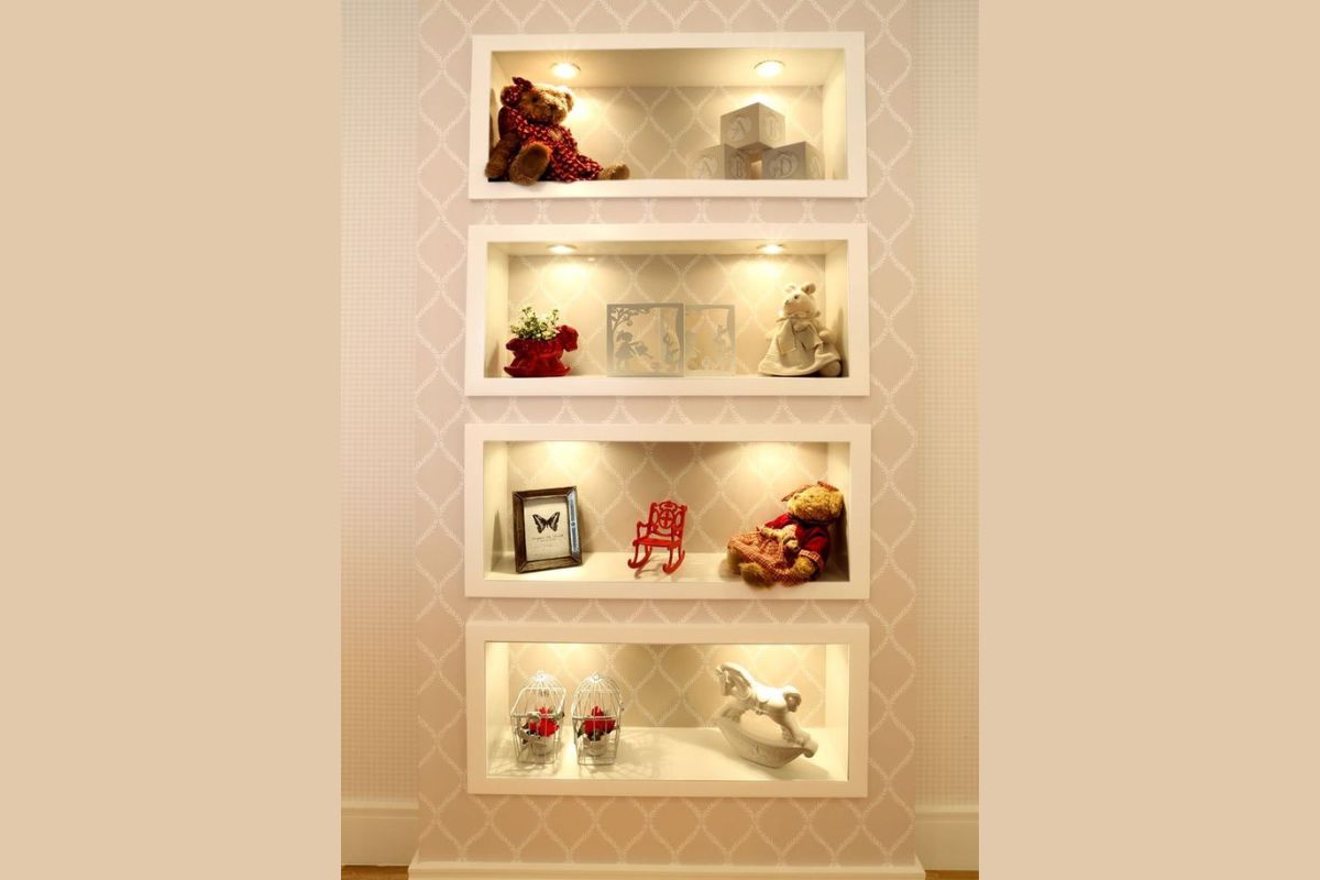 Portanto, ao planejar a colocação dos nichos, analise o quarto para perceber se existem espaços mal aproveitados que poderiam se beneficiar de uma dessas peças.